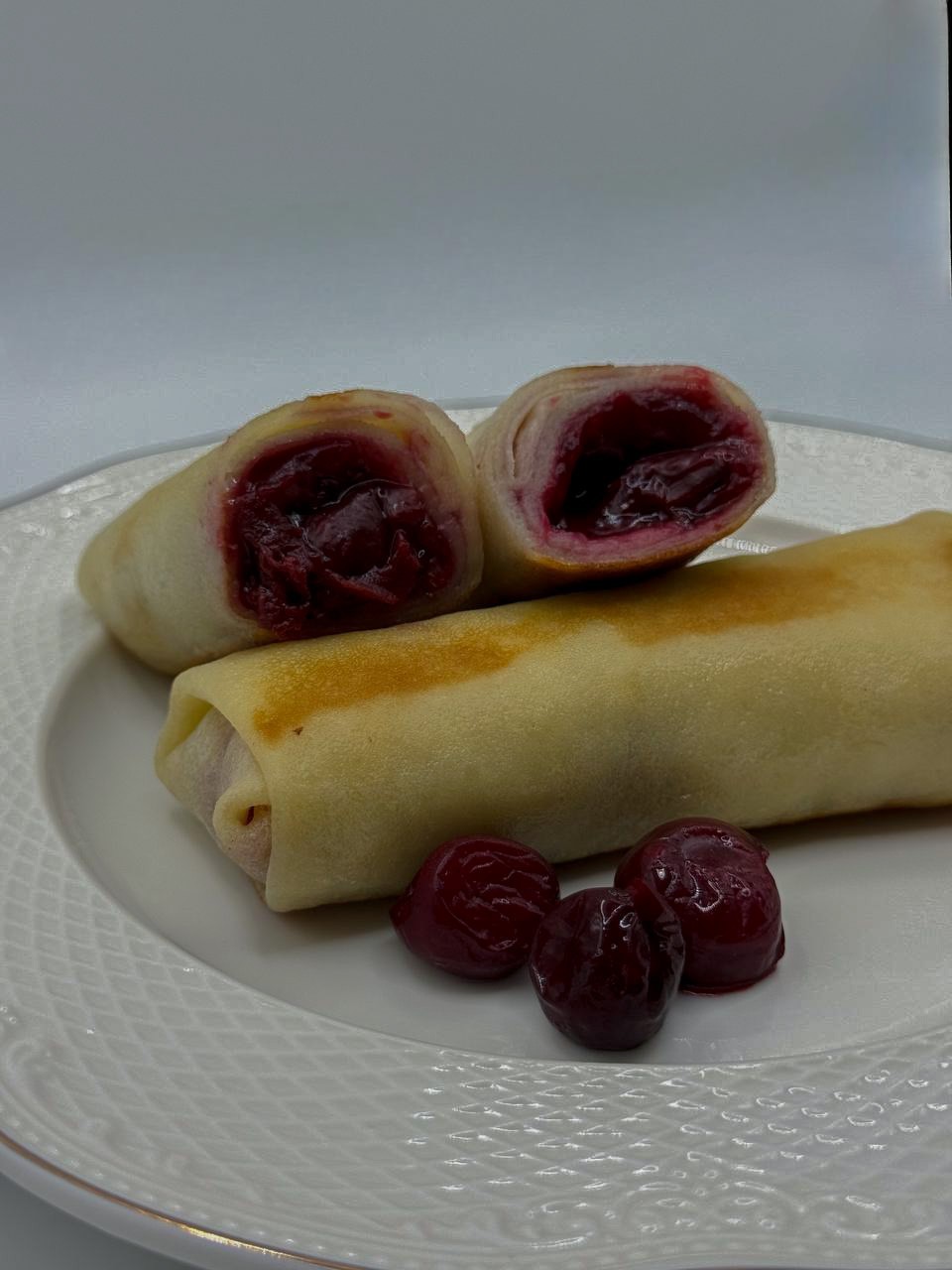 Аппетитные блинчики с начинкой из карамелизированной вишни станут  вашим любимым завтраком и очень понравятся сладкоежкам. Сбалансированный вкус и наличие всех необходимых витаминов зарядит вас энергией для бодрого начала дня.