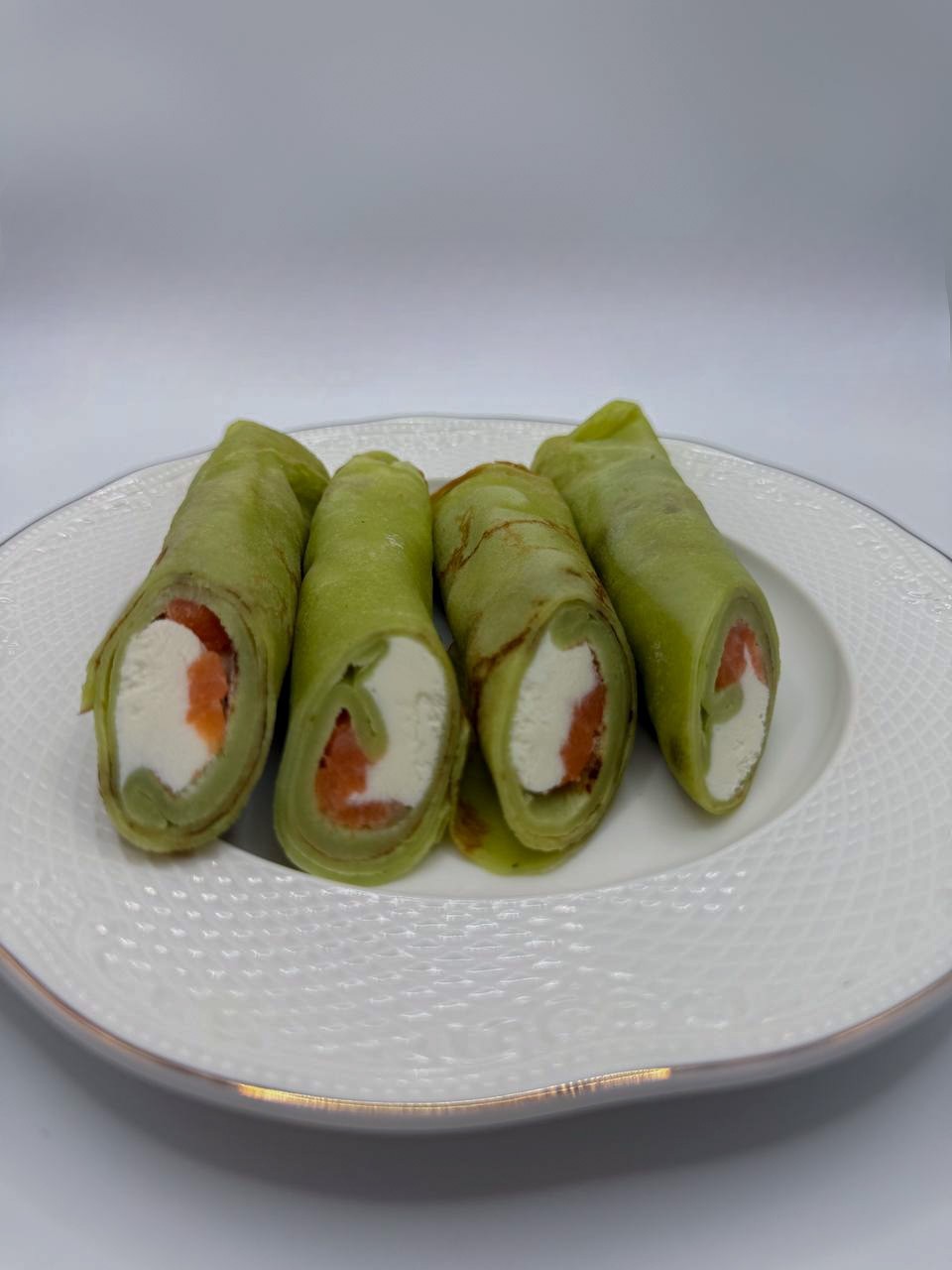 Аппетитные блинчики с вкуснейшей начинкой из лосося и сливочного сыра.Отлично подойдёт для сбалансированного завтрака. Нежнейший лосось с пушистым и легким сыром -зарядит вас энергией для бодрого начала дня.